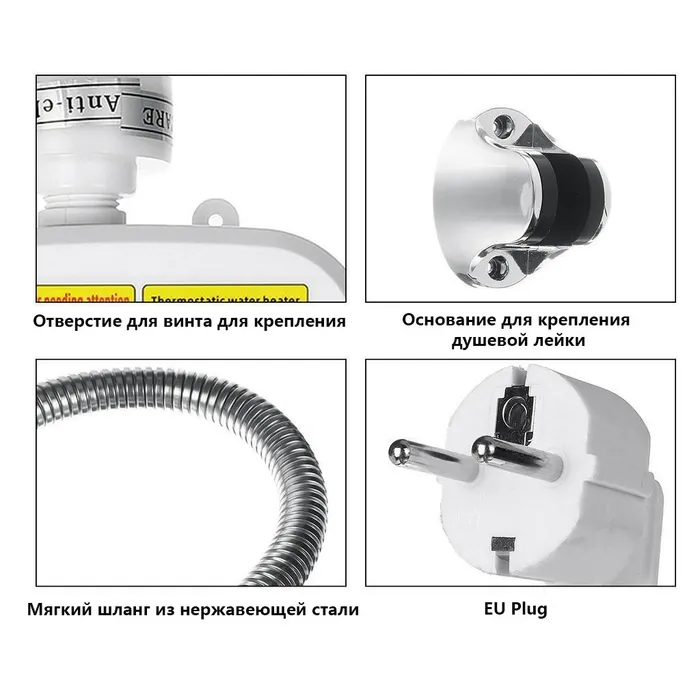 Безопасность и долговечность: этот проточный водонагреватель изготовлен из высококачественной нержавеющей стали и пластика и устойчив к коррозии. Он имеет несколько мер безопасности, таких как защита от протечек, защита от брызг IPX4, защита от сухого огня, гидро- и электроизоляция, защита изоляции корпуса.